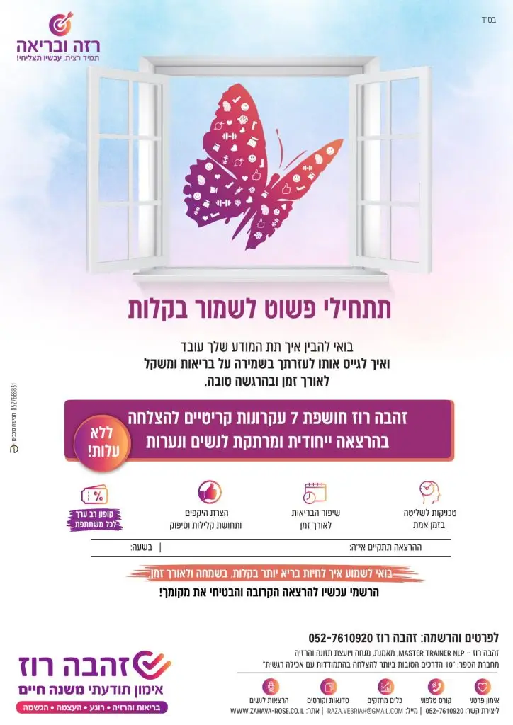 חשוב לך שהנשים יאמצו הרגלי חיים בריאים? הרצאה משנת חיים לגיוס התת מודע לשמירת הבריאות בקלות.